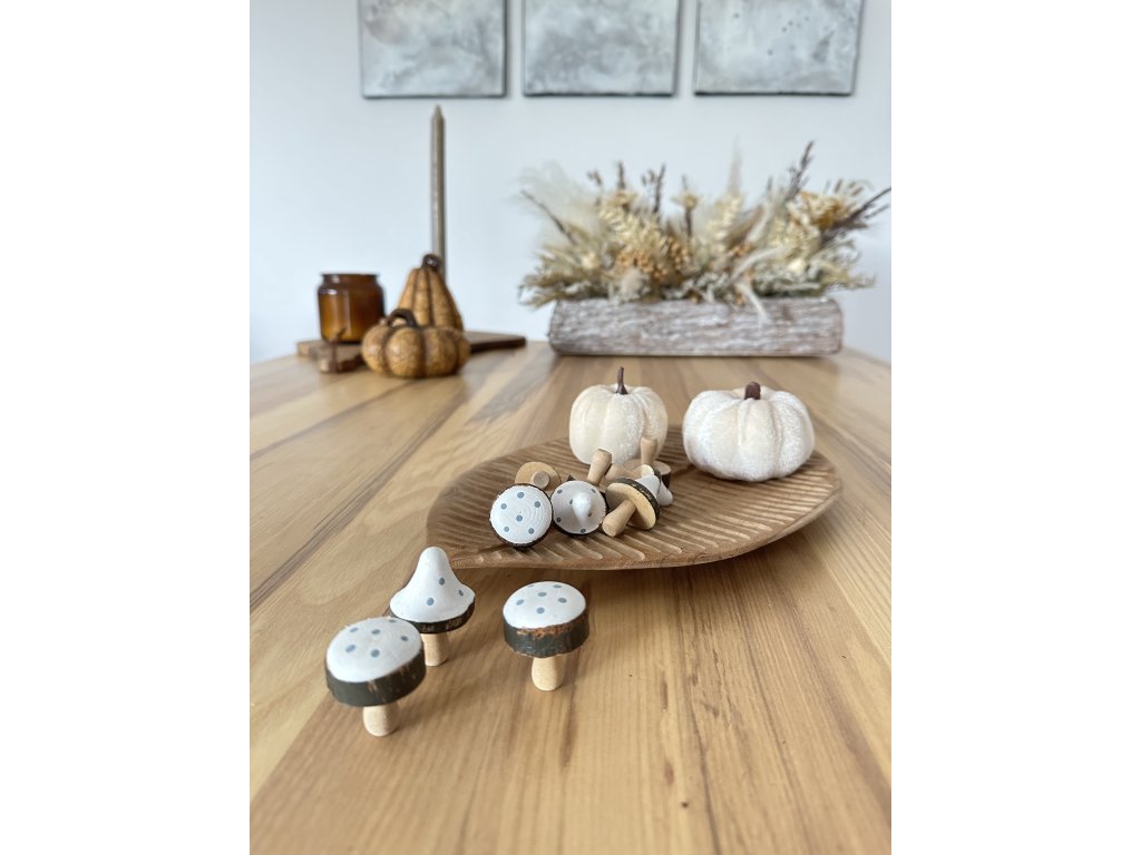 Sada desíti kusů ručně vyráběných dřevěných houbiček.