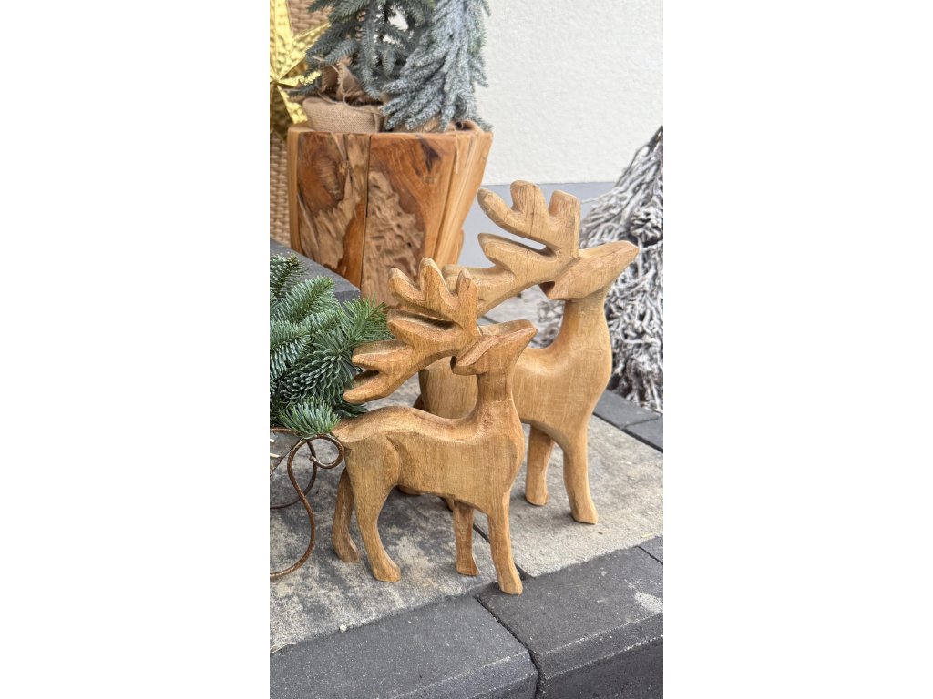 Elegantní dřevěný jelen z kvalitního mangového dřeva vnese do vašeho interiéru přírodní kouzlo a vánoční atmosféru. Díky ručnímu zpracování vyniká krásnou strukturou dřeva a jemnými detaily, které z něj dělají nadčasovou dekoraci nejen na zimní období.
