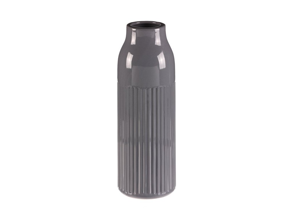 Elegantní keramická váza v nadčasové šedé barvě je stylovým doplňkem do moderního i klasického interiéru. Jemně lesklá glazura v horní části kontrastuje s plastickým vertikálním reliéfem, který dodává váze originalitu a sofistikovaný vzhled.
