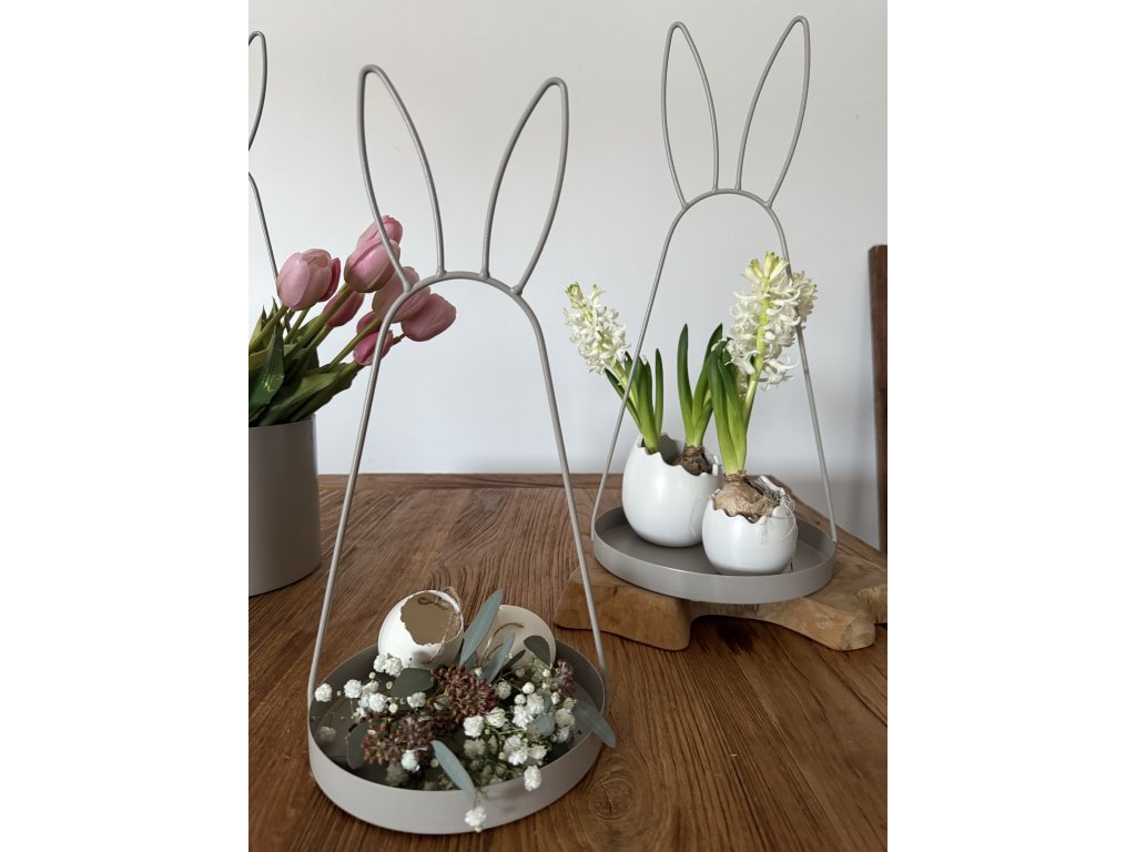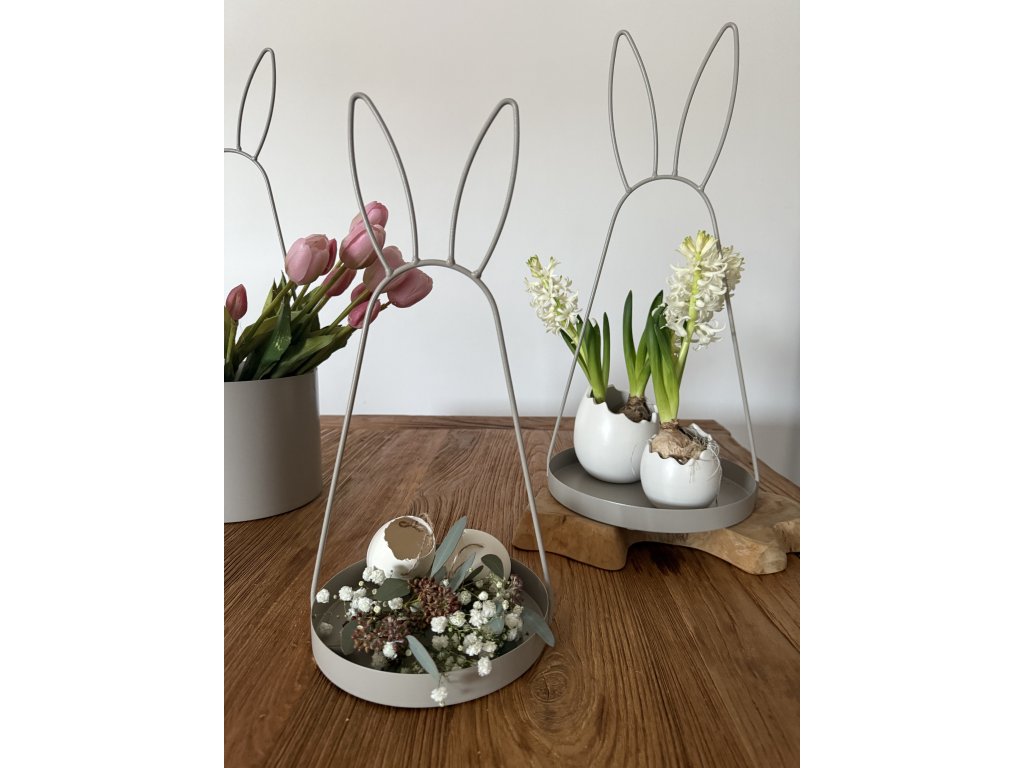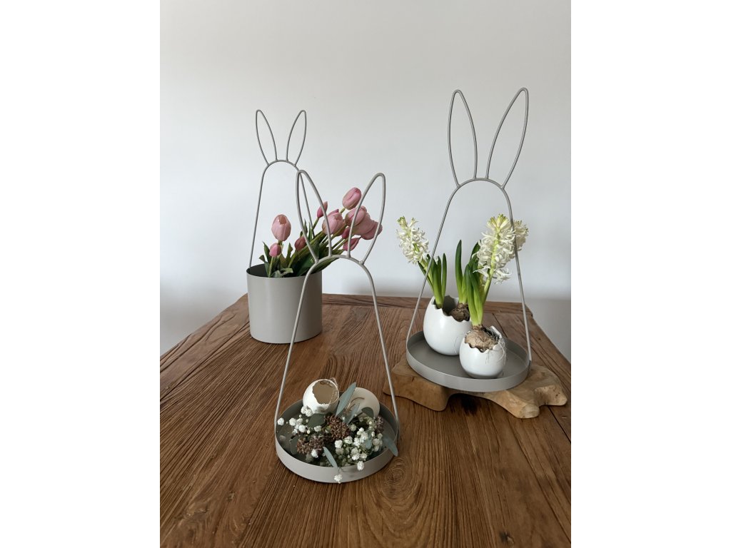 Roztomilé kovové květináče ve tvaru zajíčka jsou dokonalým doplňkem pro jarní a velikonoční výzdobu. Ve třech různých variantách. Minimalistický kovový rám s typickými oušky v kombinaci s decentní šedou miskou působí lehce, moderně a přitom hravě.