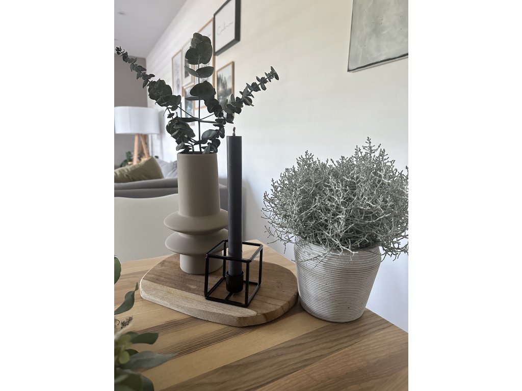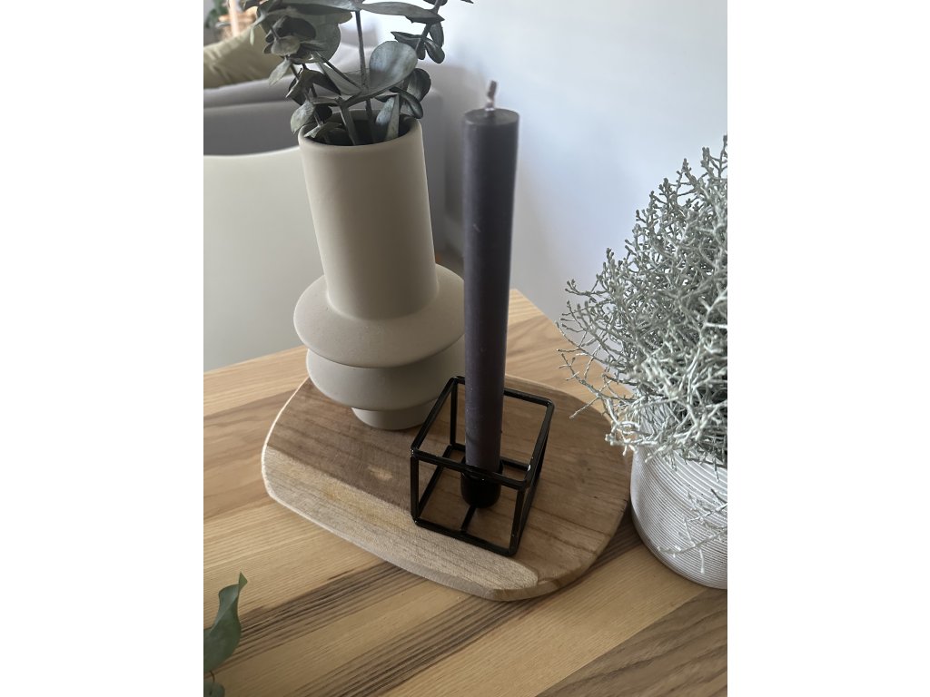 Nadčasový kovový svícen na svíčku v černé barvě.