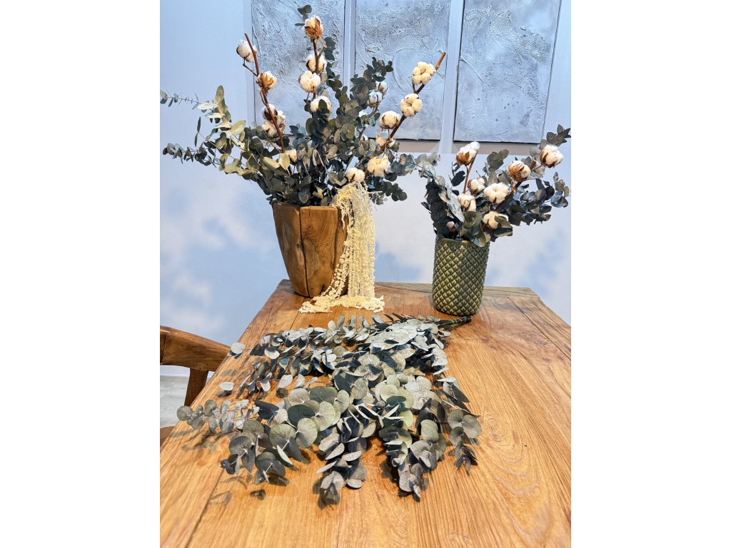 Stabilizovaný eukalyptus cinerea patří mezi nejoblíbenější dekorační zeleň díky svým typickým kulatým lístkům a jemně stříbrno-šedému odstínu. Působí přirozeně, elegantně a vnese do interiéru klidnou, harmonickou atmosféru.