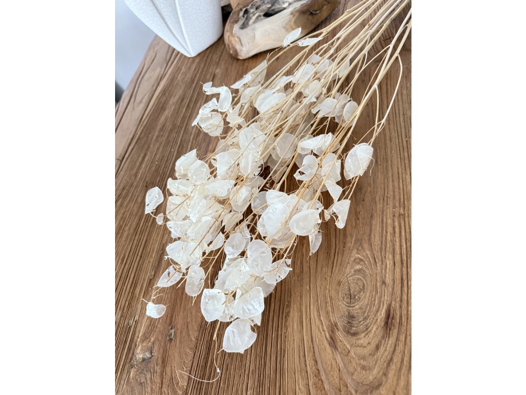Jemná a nadčasová sušená měsíčnice, známá také jako penízek, je oblíbenou dekorací pro přírodní a minimalistické interiéry. Její průsvitné, perleťově světlé tobolky působí lehce a elegantně a krásně odrážejí světlo.