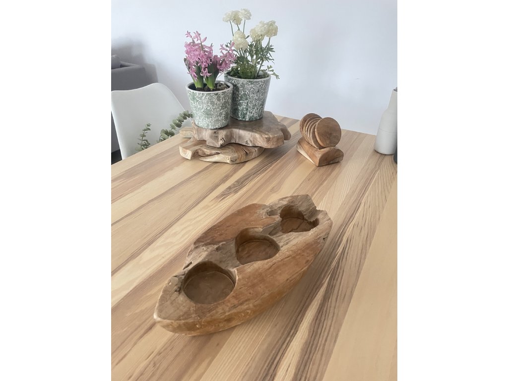 Masivní svícen z teakového dřeva se jednoduše stane dominantou ve vašem interiéru. Dále také vykouzlí nádhernou atmosféru na vašich terasách.