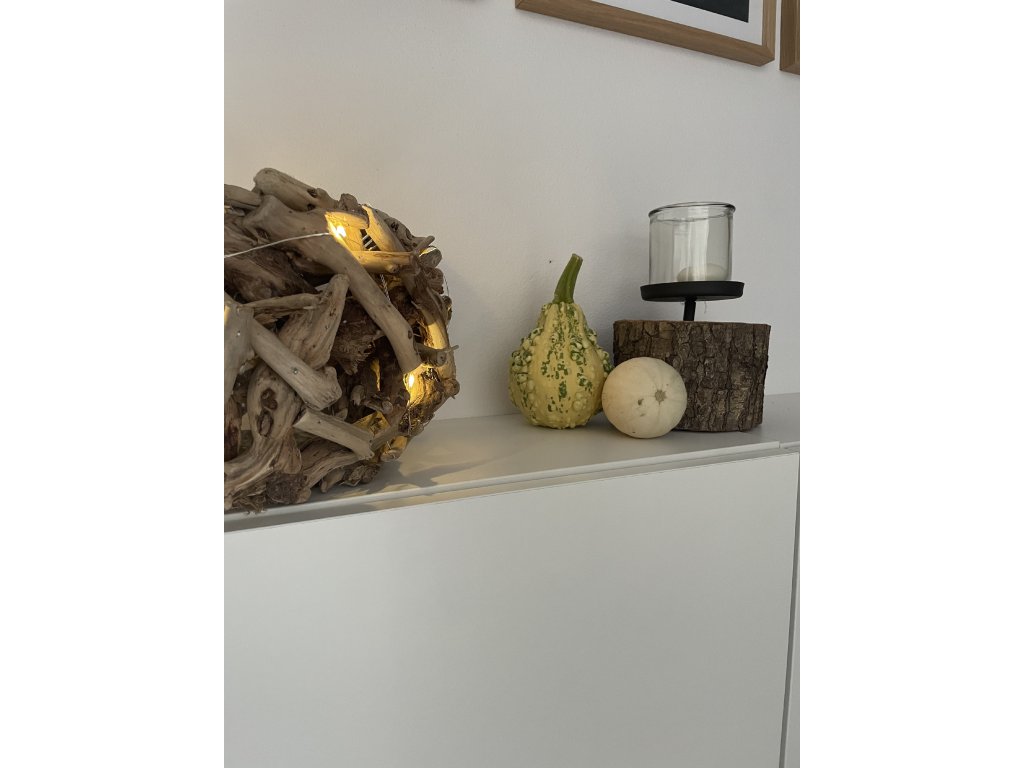 Každý svícen je originál, který je vyroben ruční prací. Uvnitř svícnu je skleněný svícen na čajovou svíčku a led světelný řetěz na baterie.