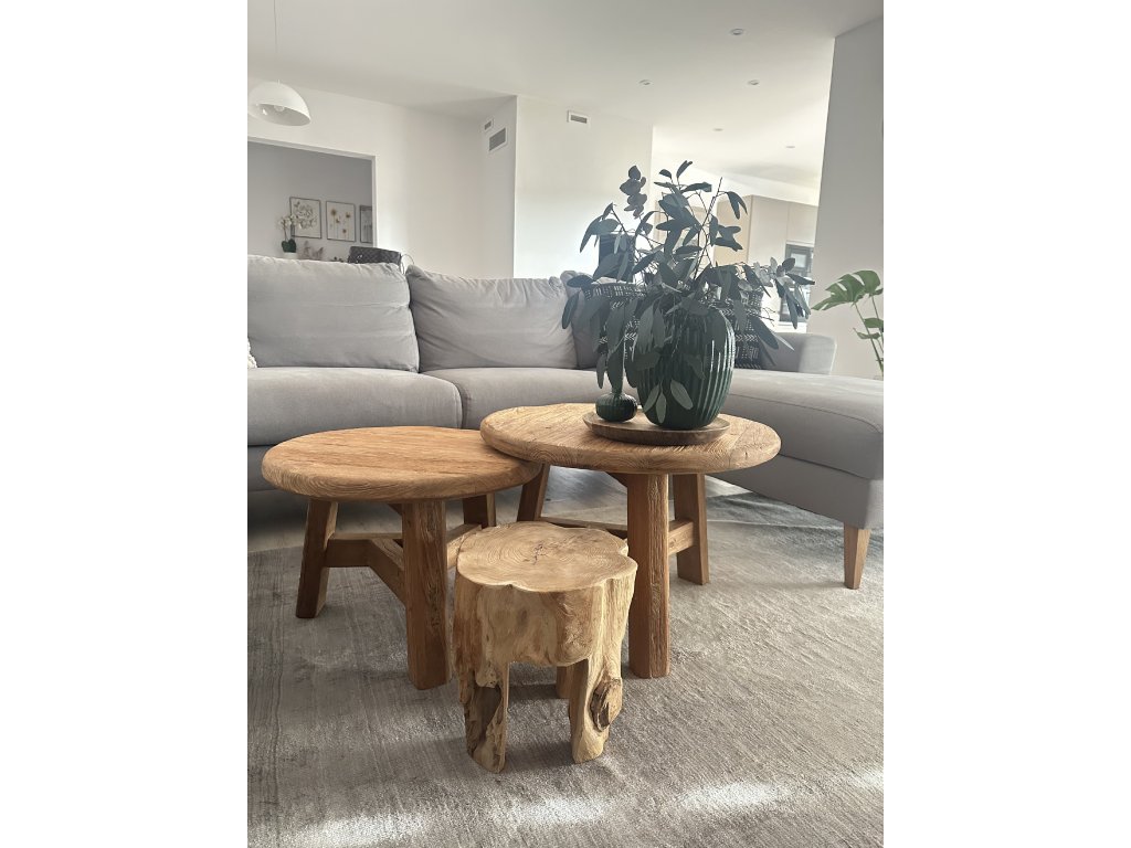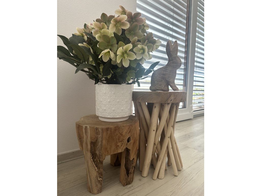 Dokonale nedokonalá kulatá stolička z úchvatného teakového přírodního dřeva.