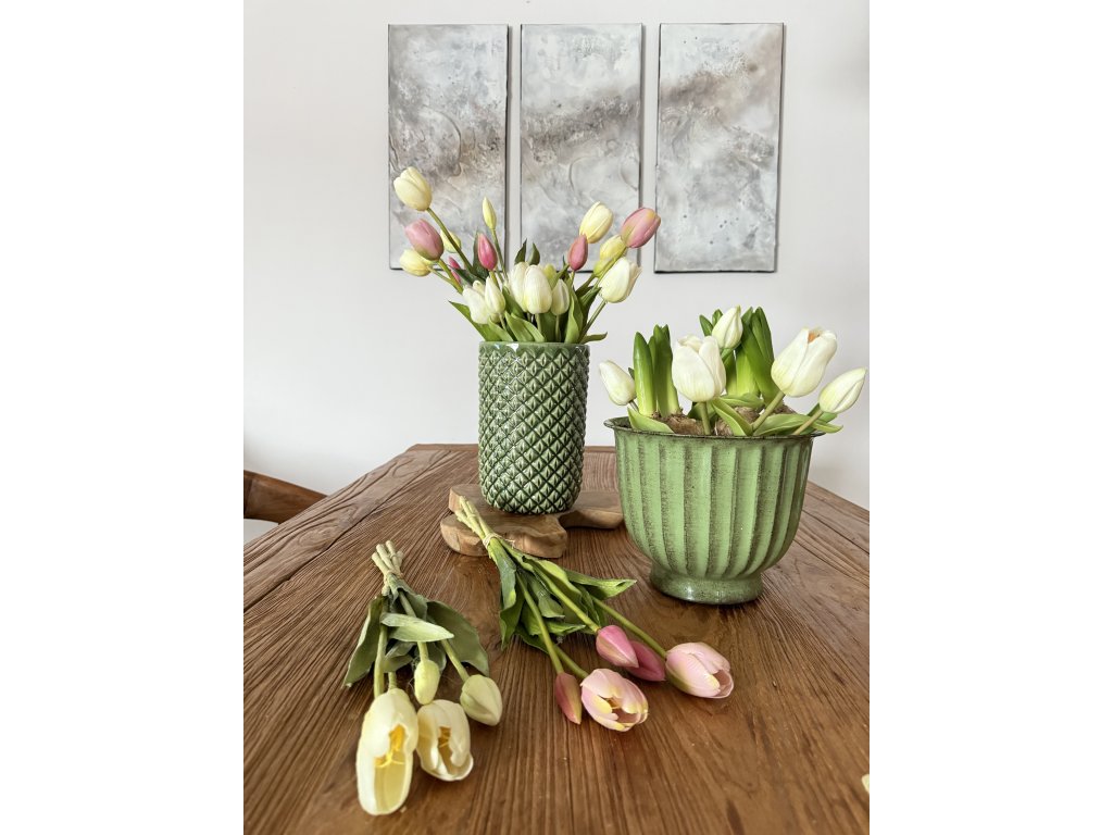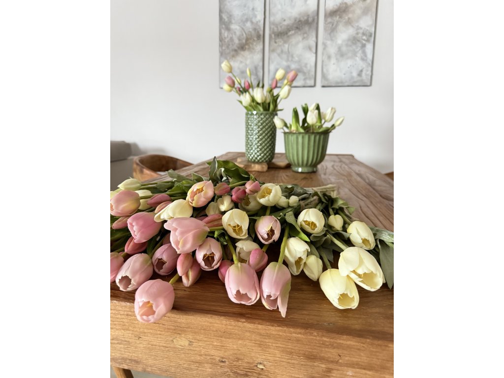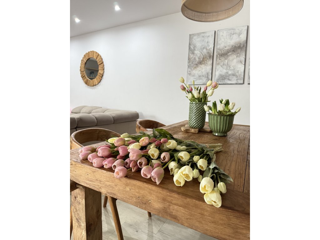 V Tyto tulipány jsou k nerozeznání od živých. Na první pohled i dotek působí přirozeně, mají jemné barevné přechody, realistické stonky i listy a krásně tvarované květy. Jsou ideální volbou pro všechny, kdo chtějí mít doma květiny bez starostí o péči.
