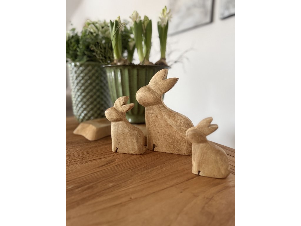 Tyto ručně zpracované dřevěné králíčky z mangového dřeva jsou jemným doplňkem, který do interiéru vnese klid, teplo a nádech jara. Každý kus je originál – kresba dřeva, drobné nerovnosti i odstín se mohou lehce lišit, což podtrhuje jejich přirozenou krásu.